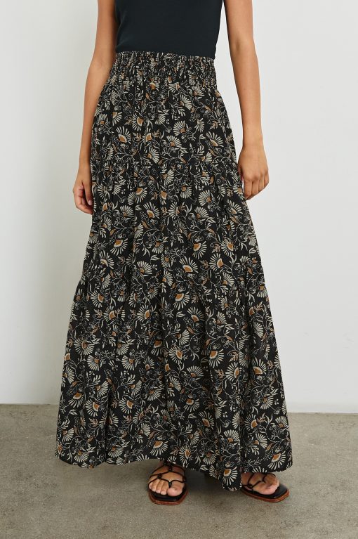The Peony is a flowing skirt crafted from tiered beach cotton with a shirred, elasticated waist. It is designed to wear high-rise, and has a maxi silhouette.