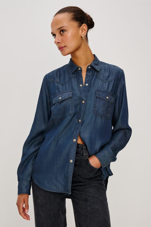 Combining style and comfort, the Remi is a utility-inspired shirt and your new trans-seasonal essential. It’s Tencel denim and detailed with a notched collar, functional pockets, and etched logo faux horn buttons.