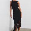 This asymmetrical fringe dress is just as fun to wear as it looks. Made from high-quality crochet knit, Rylee can be dressed up or down for any outing this season.