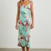 Set your clock to vacation time with the satin midi skirt of your dreams. The Sampha is a faux-wrap style with an elasticated waistband and a d-ring faux horn closure. Pair with the Paola for an occasion-ready outfit.