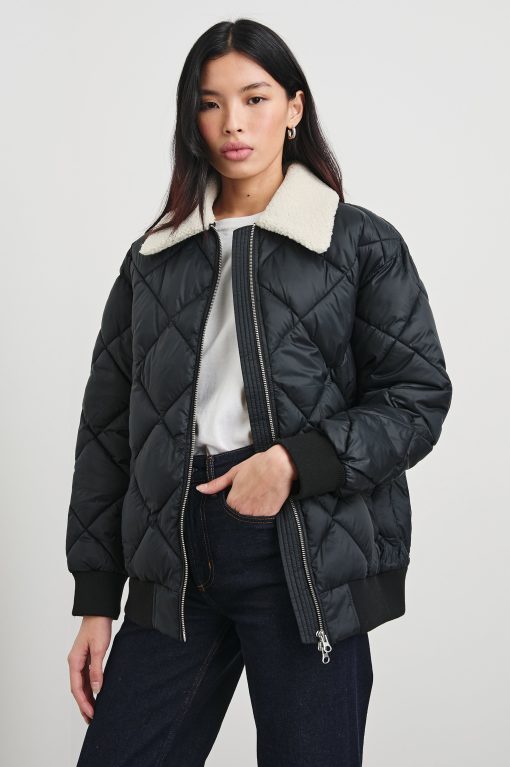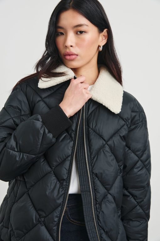 A true outerwear staple, the Shay is functional, comfortable, and seriously chic. Made from quilted nylon with a sherpa collar, this jacket will keep you warm and put together no matter where the season takes you. Zip it up and pair with slacks or drape it over a dress.