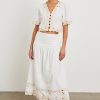 The skirt of the season, the Sol is a cotton poplin midi with a lightly gathered waist that cinches and drops at the hips. It’s finished with delicate embroidered eyelets at the hem.