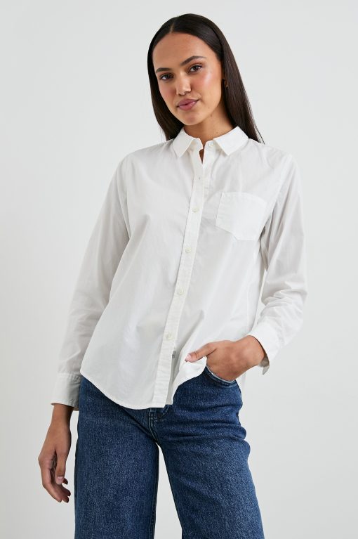 Style meets optimum functionality in Stina, the lightweight button down you’ll layer, tuck and tie all year long. With classic shirting details, a more fitted silhouette, and a 100% cotton fabrication, the Stina pairs perfectly with your favorite Rails denim.