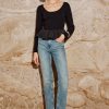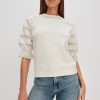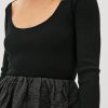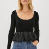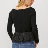 The Tillie is a fitted, long-sleeved sweater top crafted in a fine-gauge knit. A cotton poplin ruffle adds contrast at the hem.