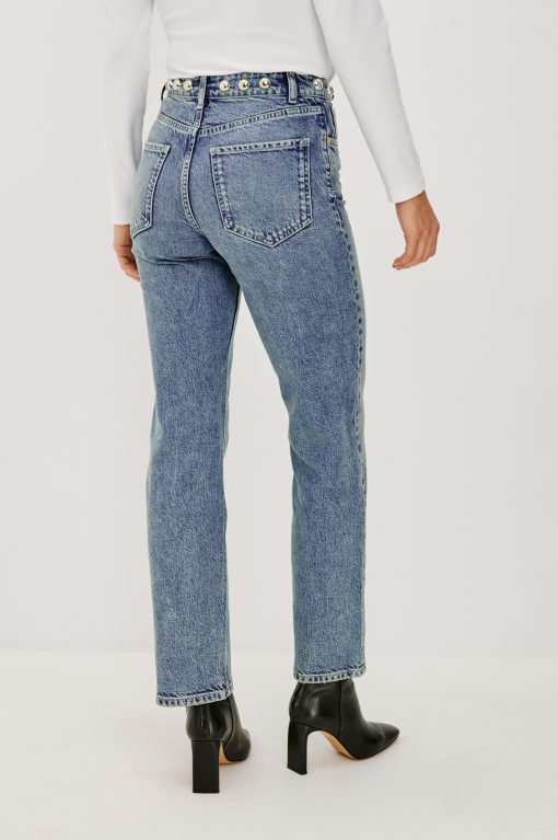 The Topanga is a favorite jean made modern. A high-waisted, straight-leg silhouette with a buttery soft feel, and finished with metal studs, the Topanga has a lived-in, effortlessly chic vibe reminiscent of a ’90s It girl.