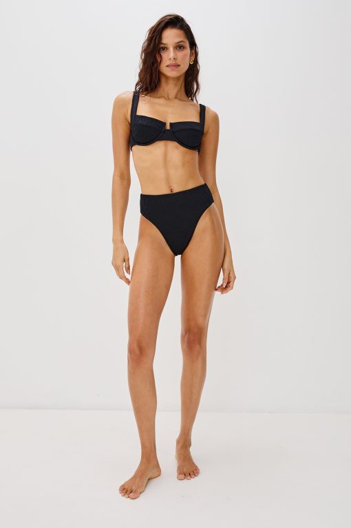 The Savannah from Rails x LSPACE is an elegant high-waisted bikini bottom with classic coverage. Featured in a luxe textured fossils fabric.