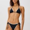 The Rails x LSPACE Zahra bottom features detailed blanket stitching in a classic cream and black colorway. Fit details include classic coverage and mid-rise tie sides for customization.